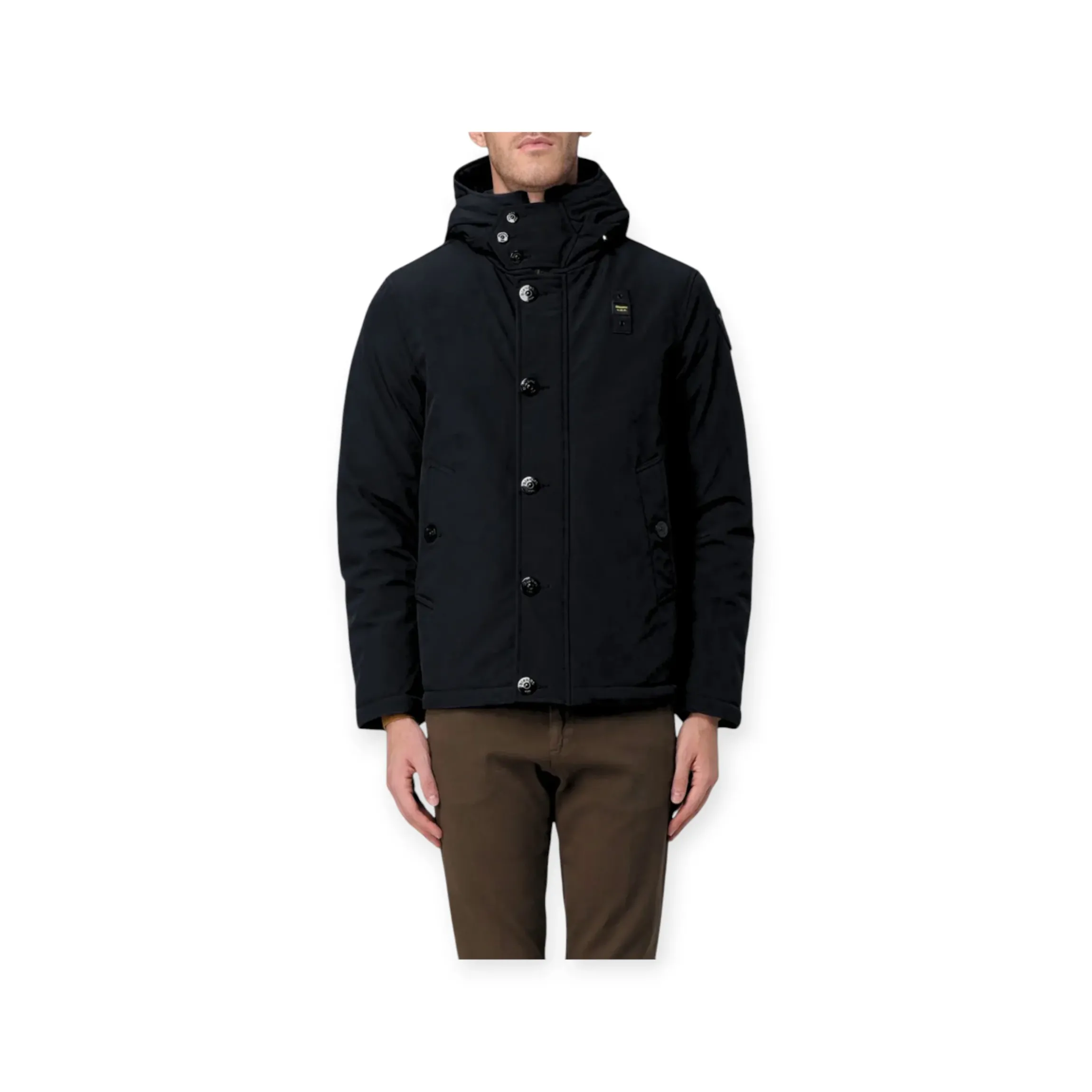 BLAUER USA GIUBBINO UOMO ANDREW idrorepellente in neoprene e foderato internamente in nylon micro-rip con impuntura ad onde orizzontali. Un capo dalla linea pulita e imbottito per la massima protezione. Si presenta con cappuccio fisso con coulisse, in neoprene liscio, chiusura con zip nascosta da pattina e bottoni a chiodo, tasche frontali con bottone, tasche interne, coulisse sul fondo. Imbottito con l innovativa ovatta Sonora Aura. Dettagli loco con patch sulla manica sinistra e passante sul lato cuore.