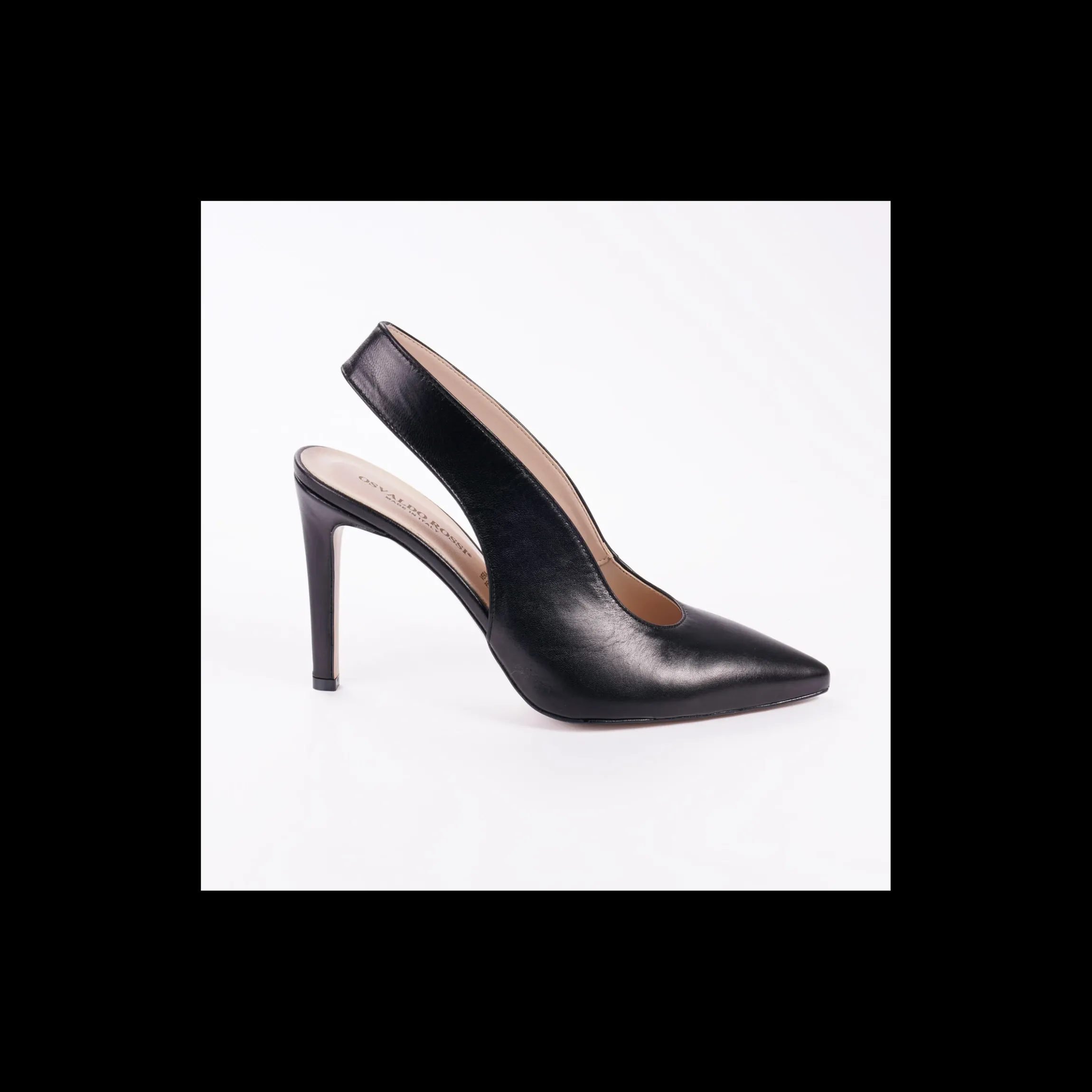 Dècolettè OSVALDO ROSSI in pelle colore nero, a punta, tallone aperto, interno in pelle, fondo cuoio