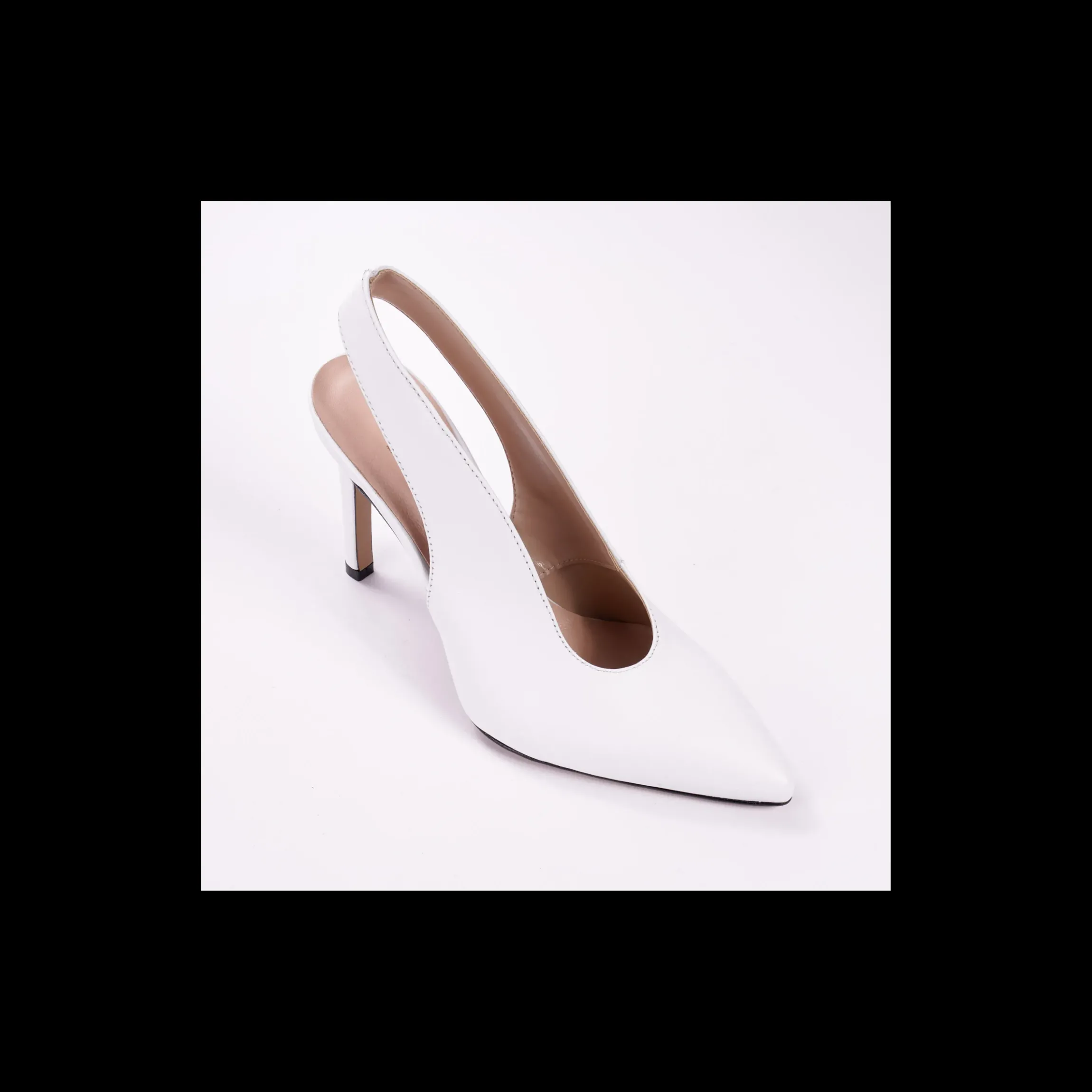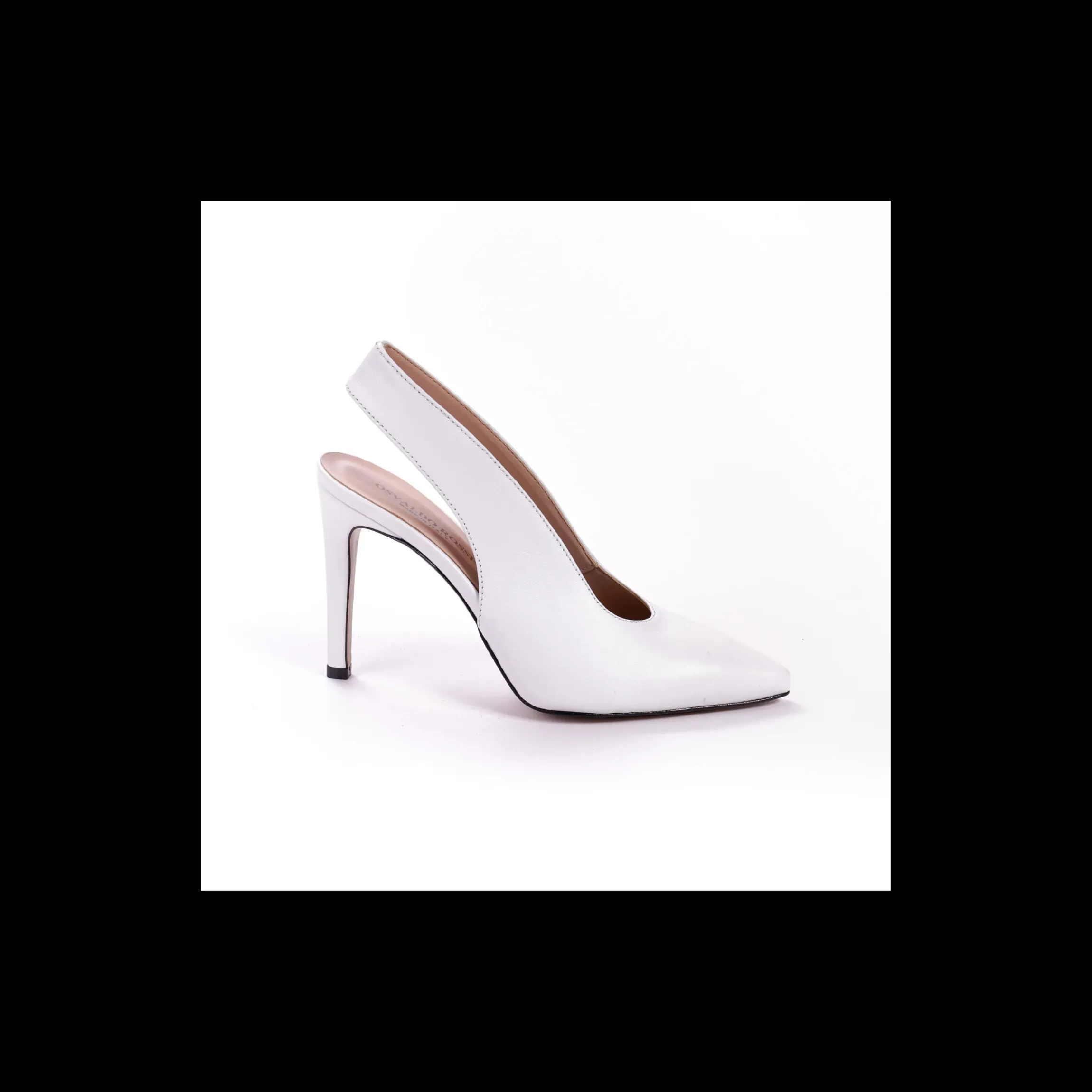 Dècolettè OSVALDO ROSSI in pelle colore bianco, a punta, tallone aperto, interno in pelle, fondo cuoio