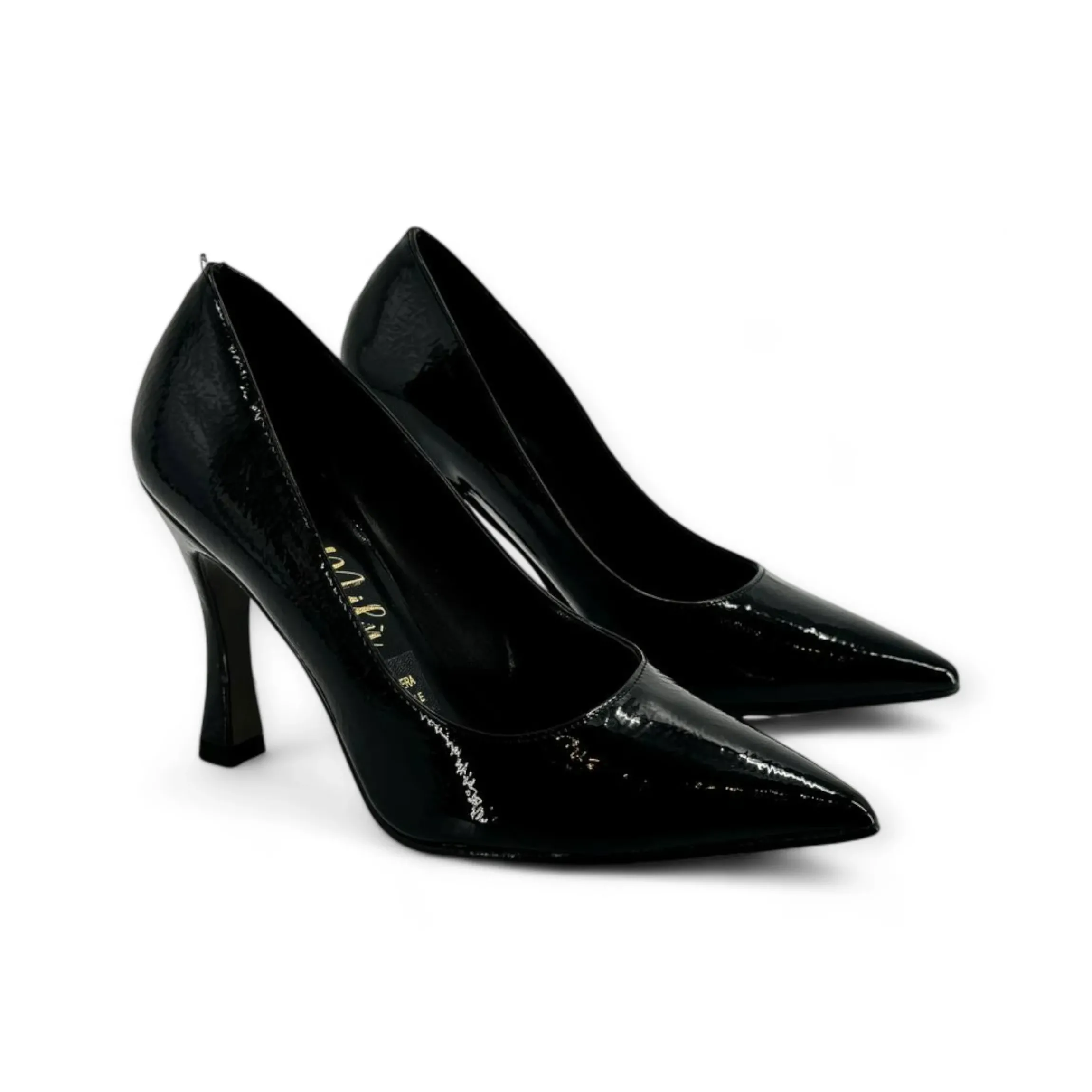 DECOLLETE’ DONNA CON TACCO A ROCCHETTO MILU’ MILANO a punta, con tomaia interna rivestita in pelle con tacco alto 9 cm. Disponibile in vernice colore nero e in pelle stampa pitone