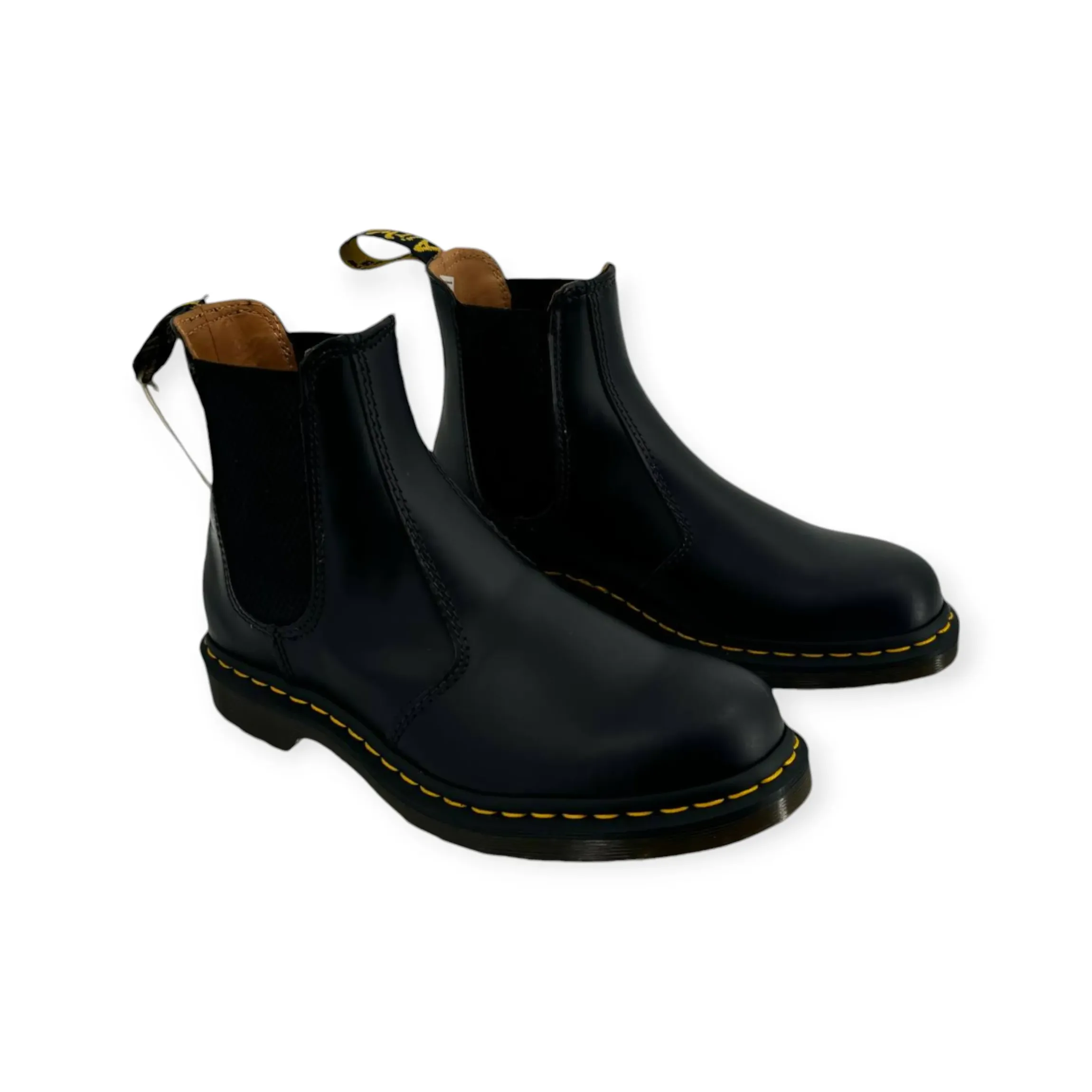 DR MARRTENS 2976 STIVALETTI CHELSEA di colore nero realizzati in pelle smooth. Interno sfoderato con soletta removibile, linguetta AirWair posteriore, con le classiche cuciture gialle del famoso marchio Dr Martens e suola in gomma