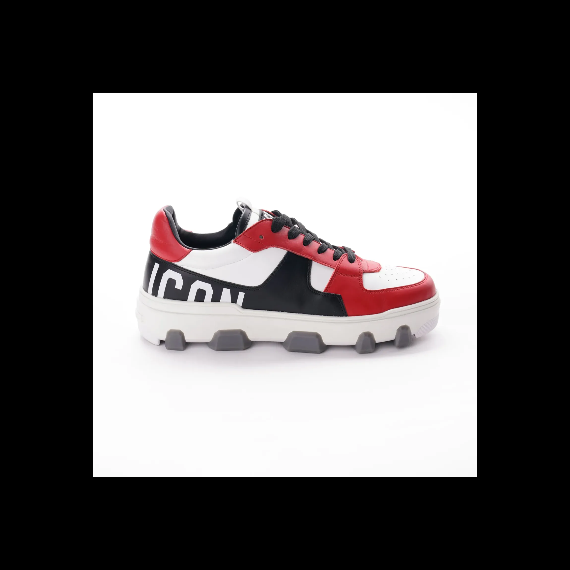 DSQUARED2 ICON BASKET IN PELLE, ALLACCIATA, MAXY LOGO SOTTO LA SUOLA IN GOMMA, LOGO STAMPATO LATERALMENTE E APPLICATO SULLA LINGUETTA. LA PELLE IN VITELLO MORBIDO GARANTISCE UNA CALZATA COMODA E ASSOLUTAMENTE DI LUSSO.