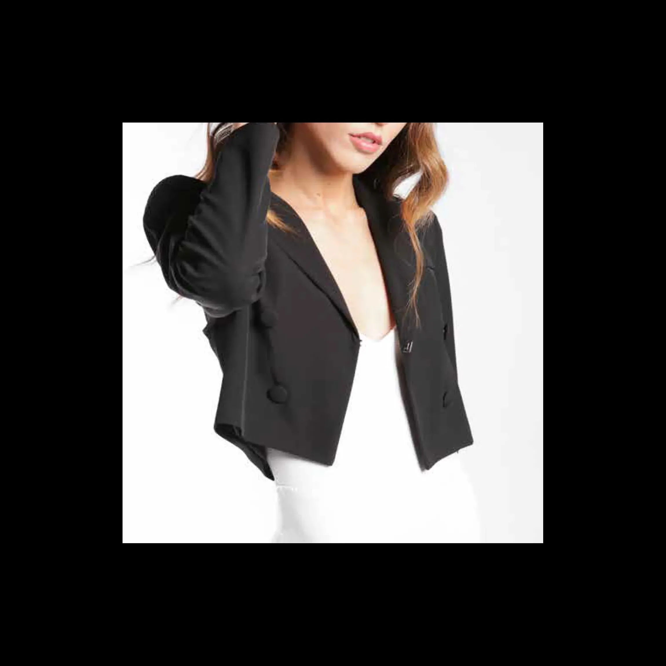 Giacca Corta Marc Ellis, di colore nero, con bottoncini apllicati.