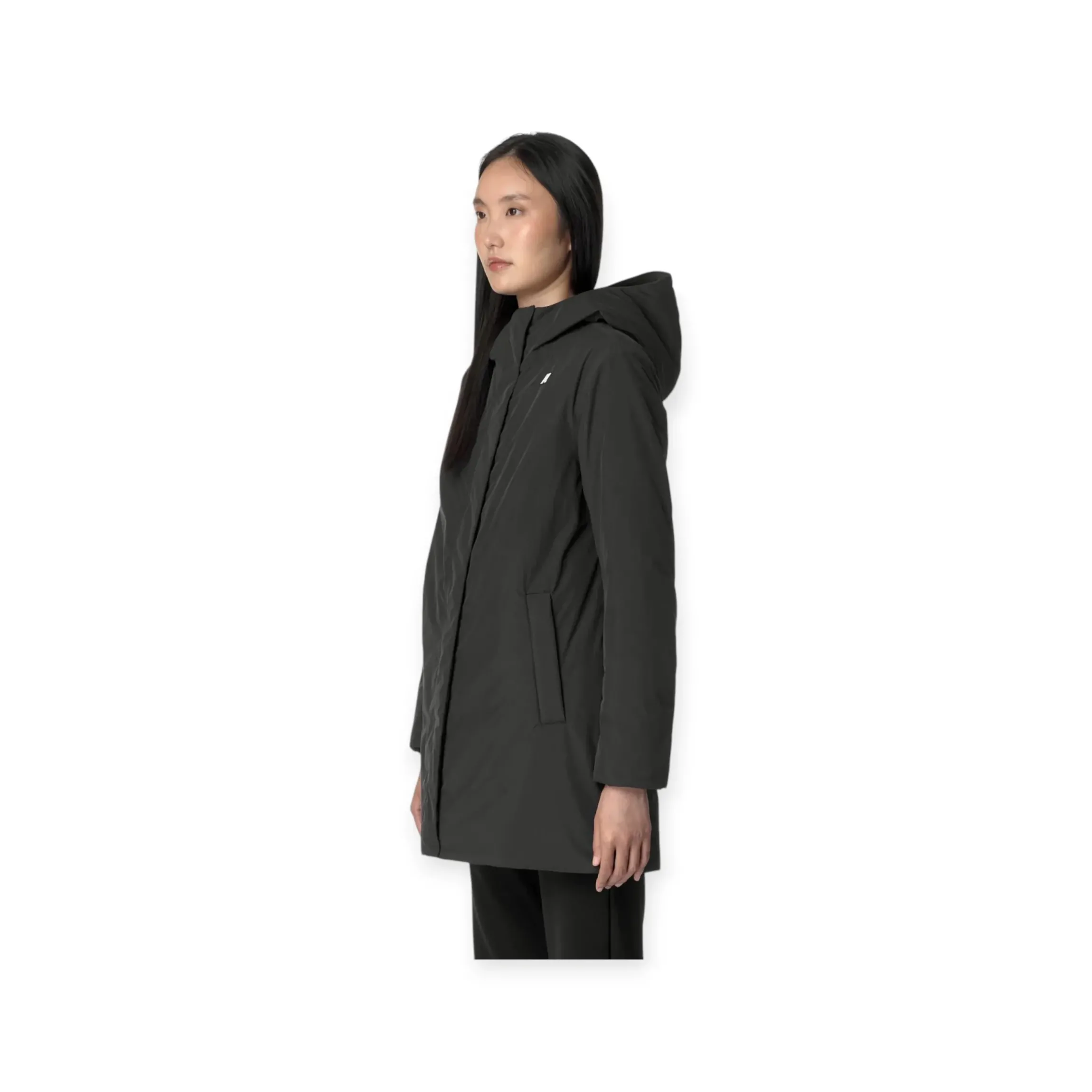 K-WAY SOPHIE SOFT TOUCH MARMOTTA DONNA, giacca da donna di media lunghezza che si caratterizza per la linea slim e femminile, realizzato in tessuto morbido, con la classica fodera in tessuto soffice. Il capo impermeabile e antivento, con cuciture termonastrate, polsini con elastico, tasche e chiusura con zip e fondo regolabile con corda elastica è disponibile nel colore nero