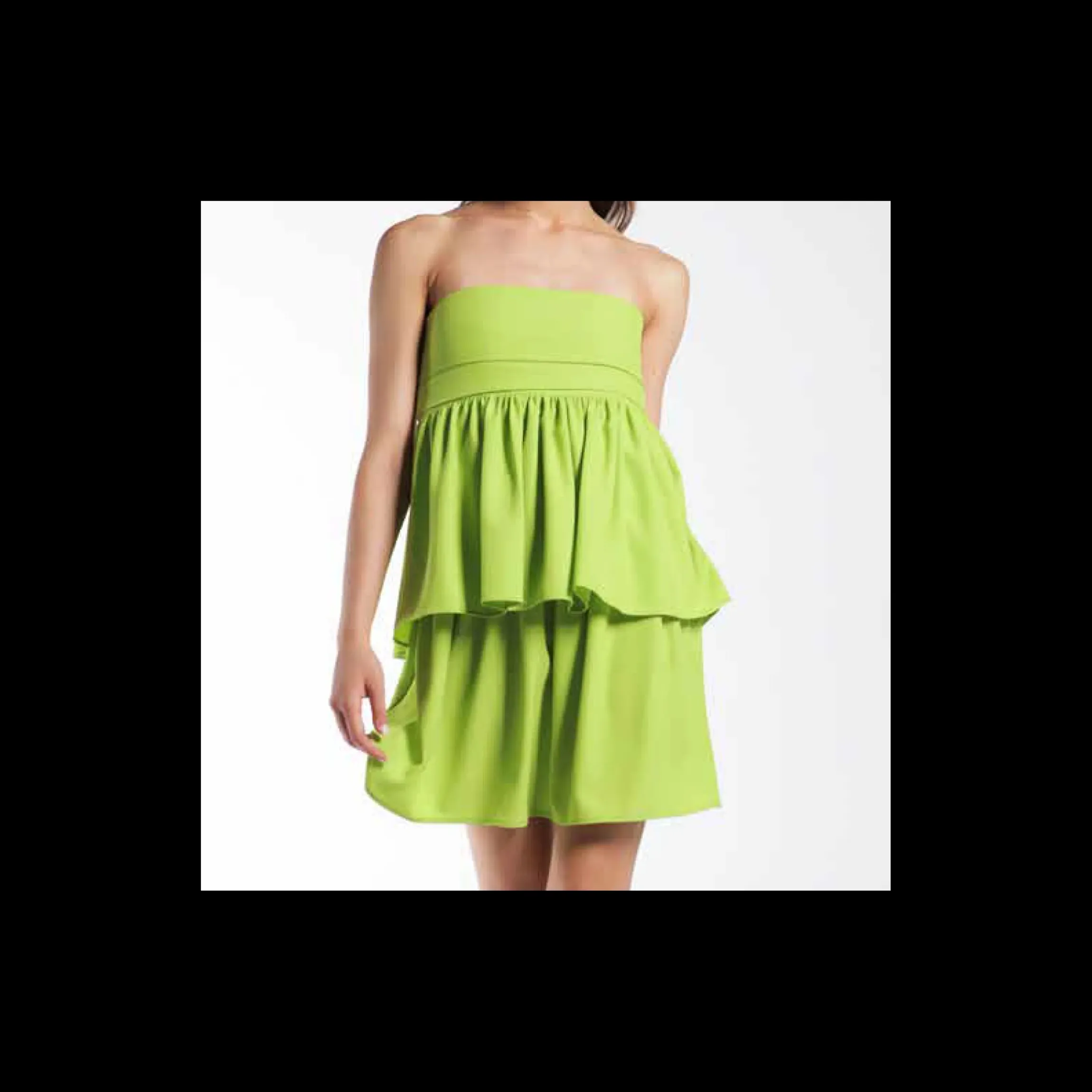 Mini Abito Marc Ellis, di colore verde acido, con maxy rouge, leggermente elasticizzato, chiusura zip invisibile laterale.