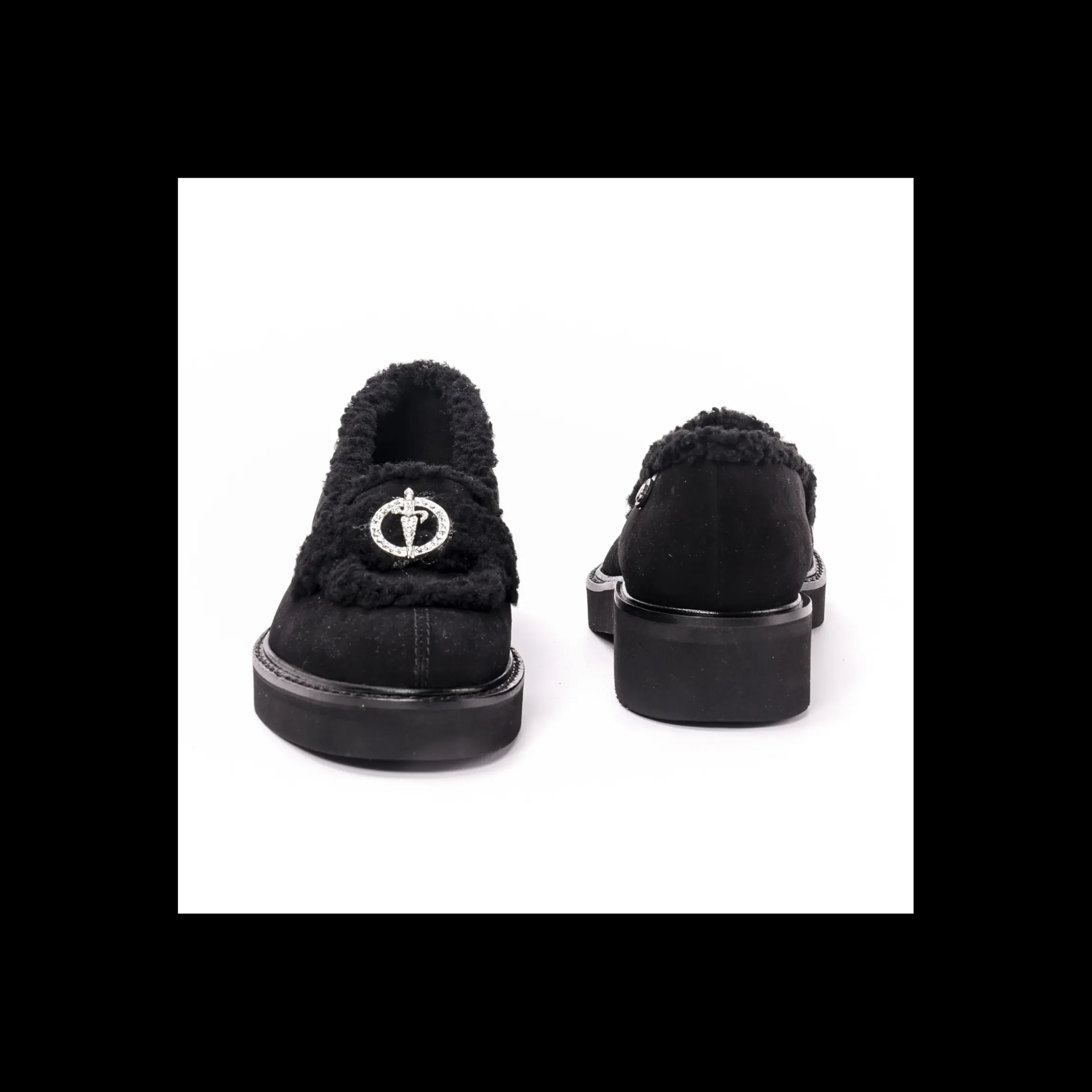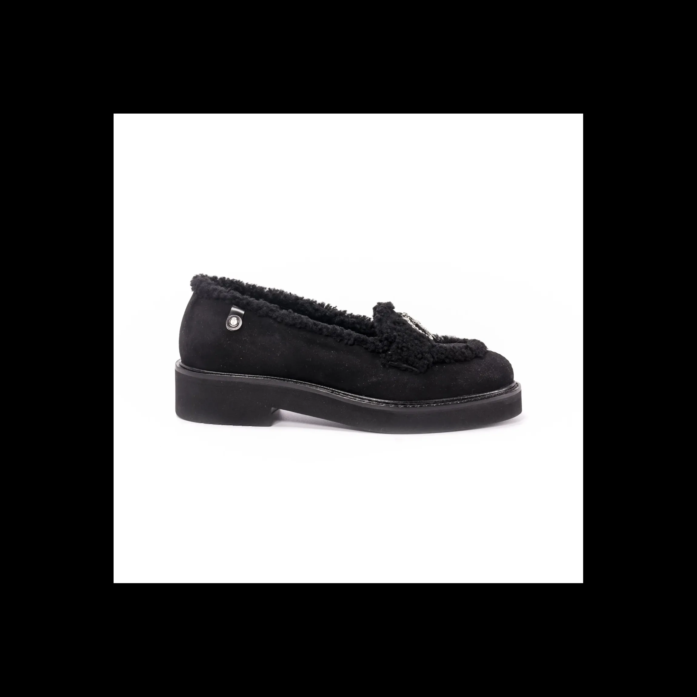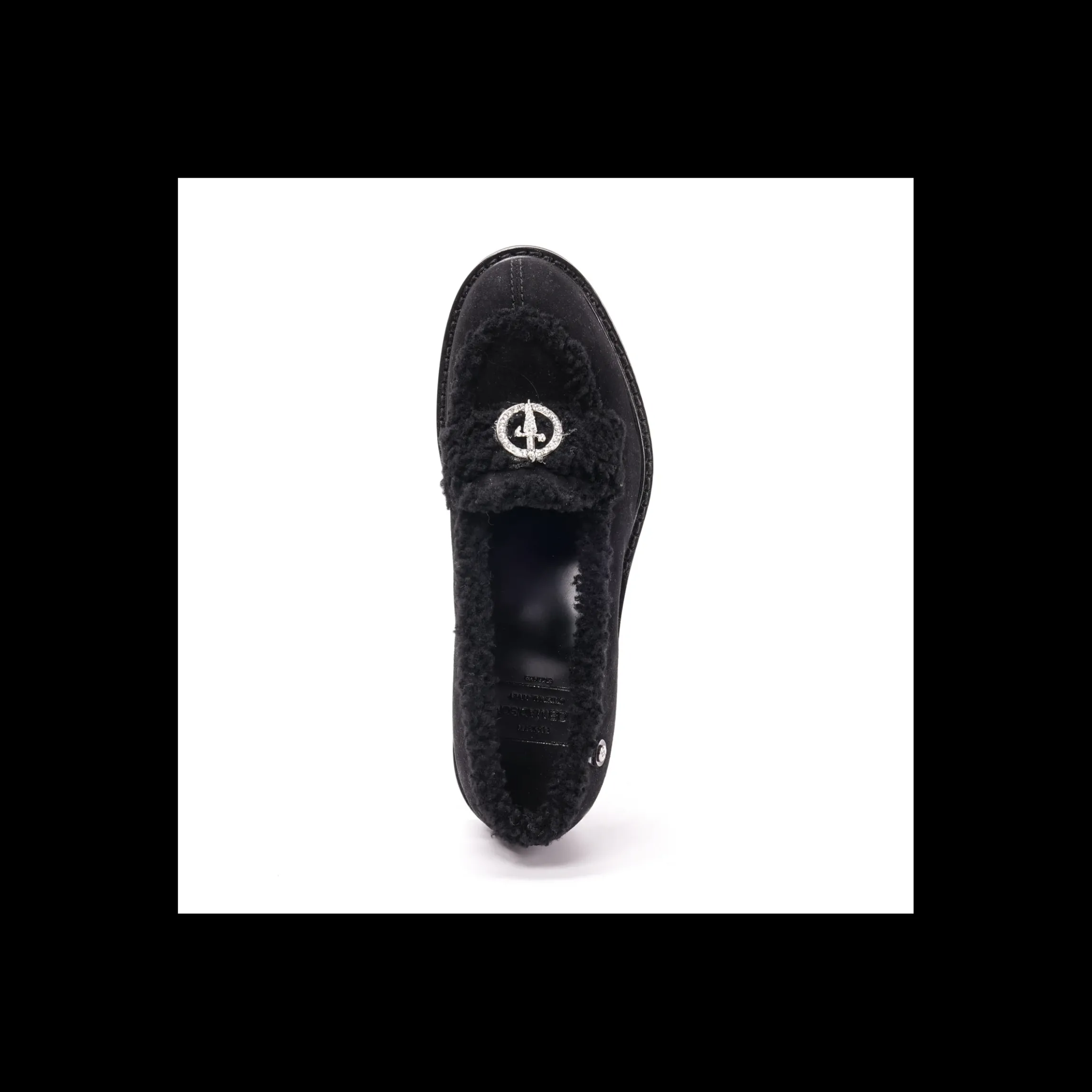 Mocassino 308 Madison Cesare Paciotti di colore nero, in camoscio con dettaglio logo con swaroski .