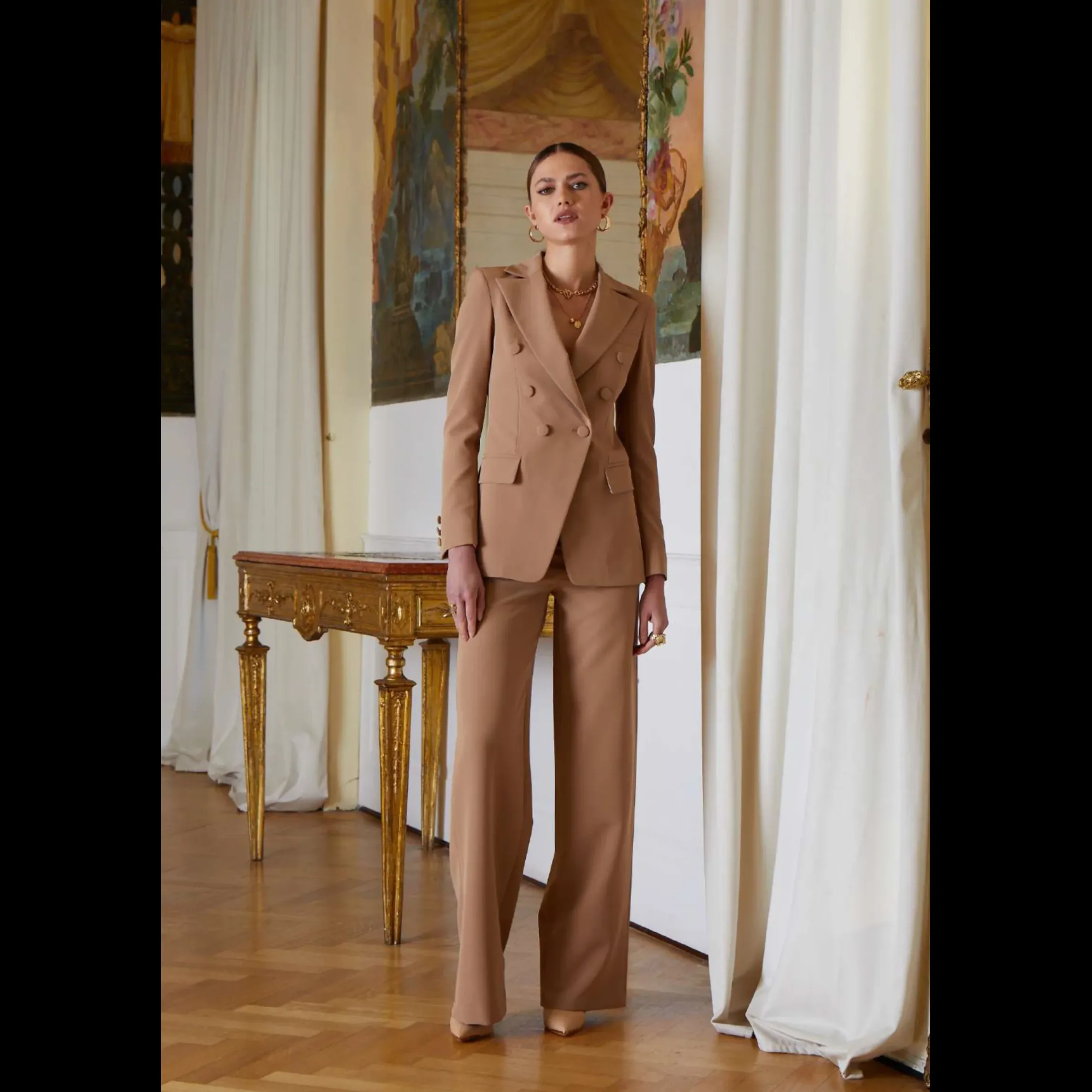 PANTALONE GIULIA N COLOR CAMMELLO, VITA ALTA GAMABA LARGA ,CHIUSURA ZIP LATERALE