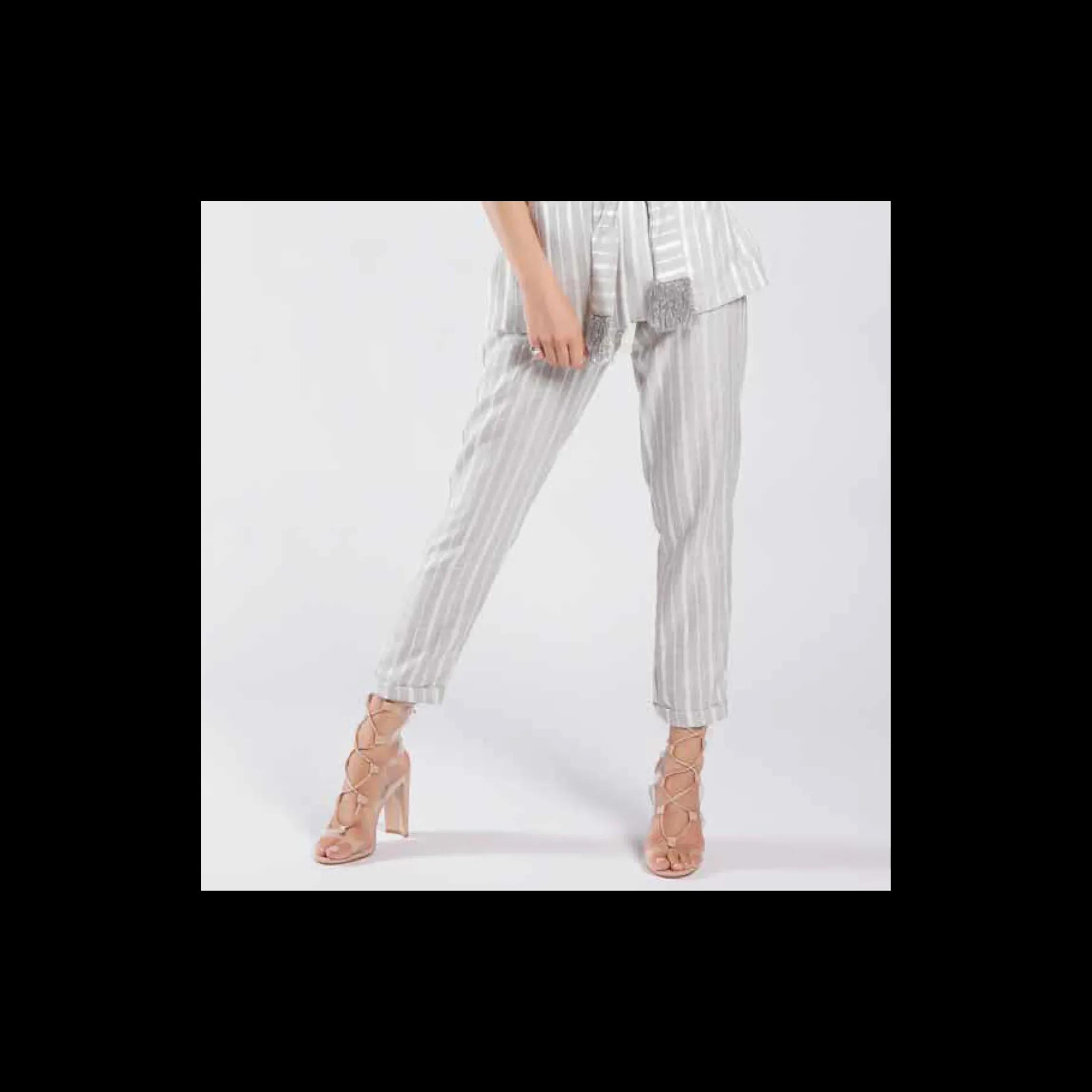 Pantalone Marc Ellis, a righe di colore grigio e bianco, coulisse morbida in vita, tasche alla francese.