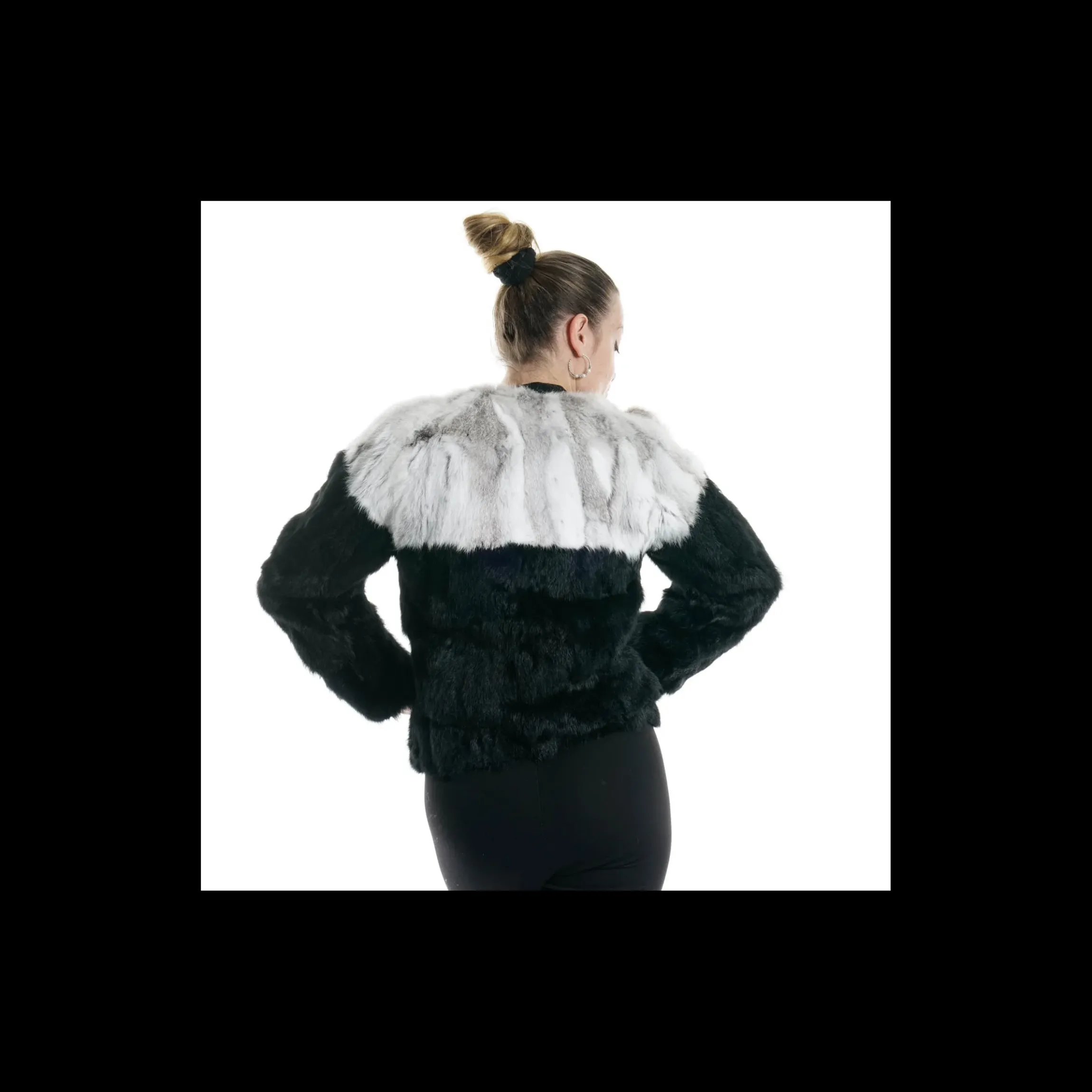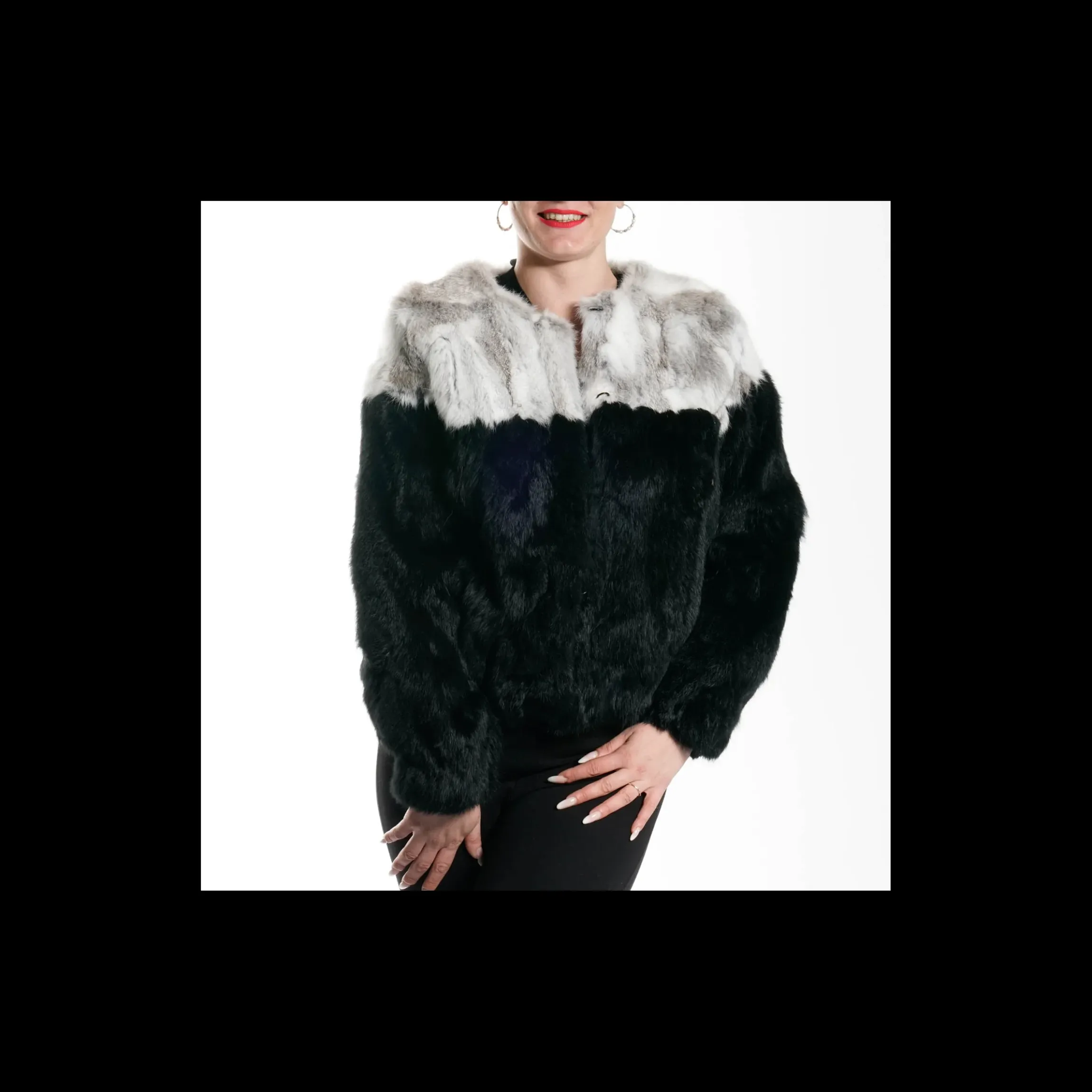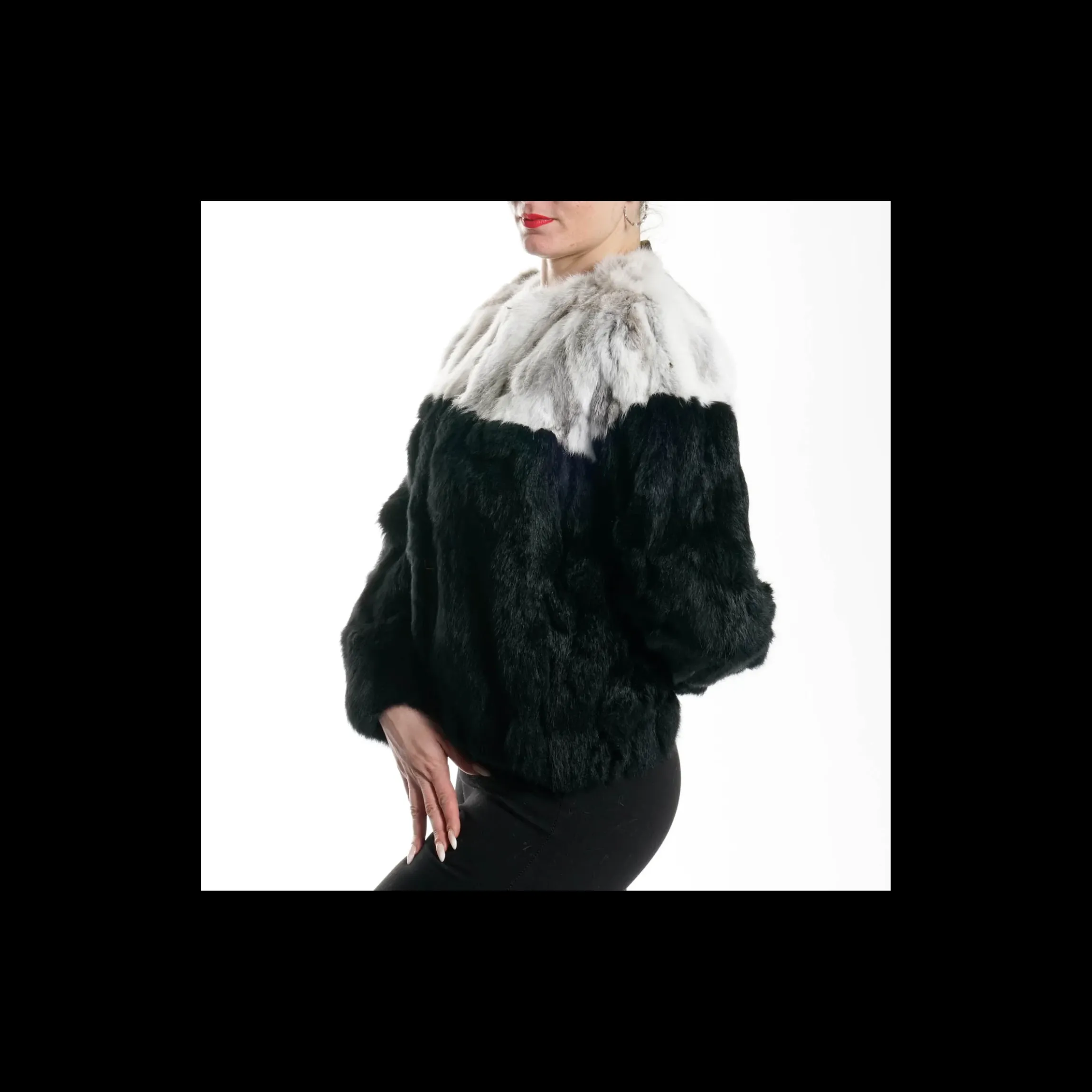 Pelliccia BETTA CORRADI in 100% rabbit /oryctolagus cuniculus colore bianco/nero, abbottonatura a scomparsa , tasche laterali a scomparsa