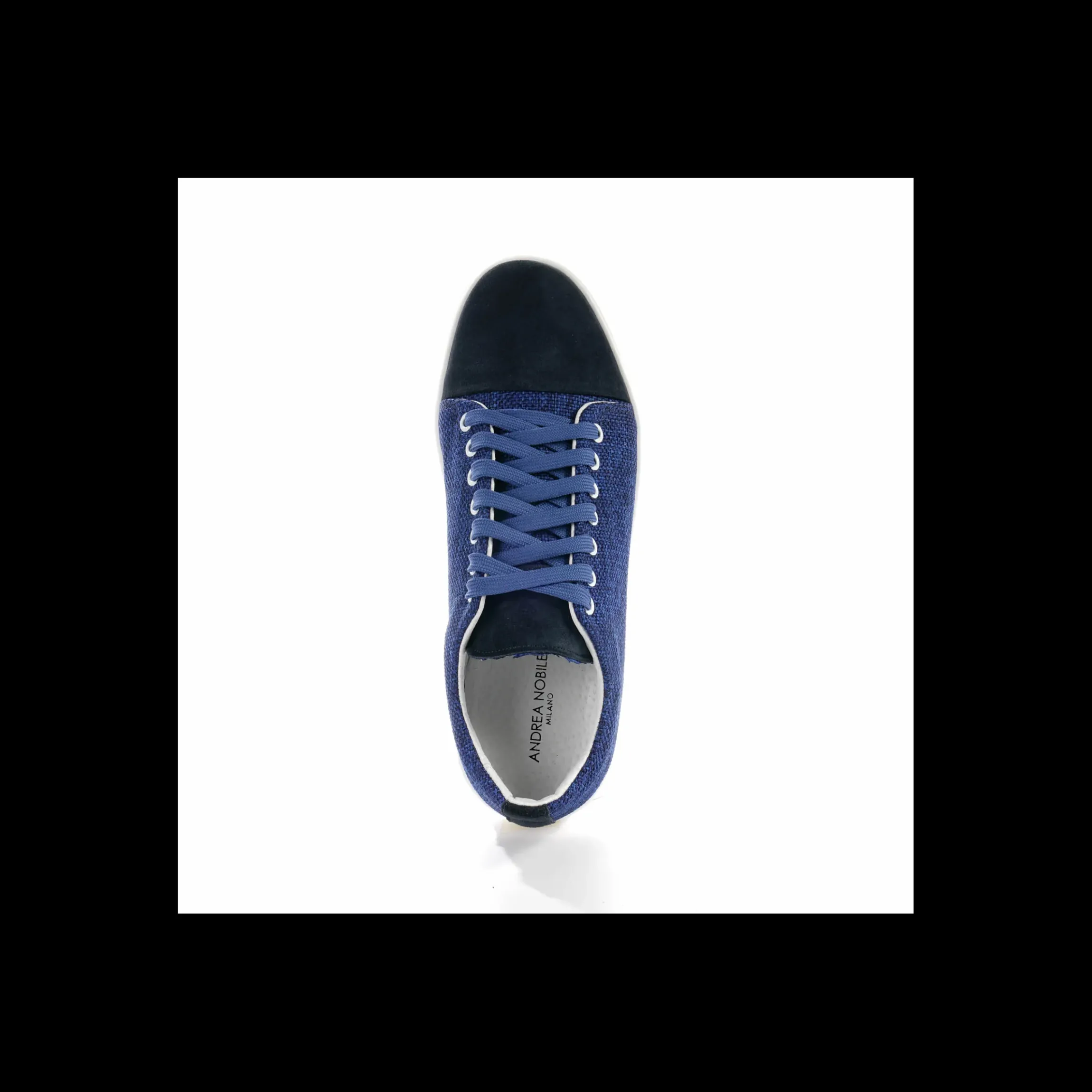 Sneakers ANDREA NOBILE con punta in camoscio e tomaia in tessuto, fondo gomma, disponibile nei colori blu e rosso