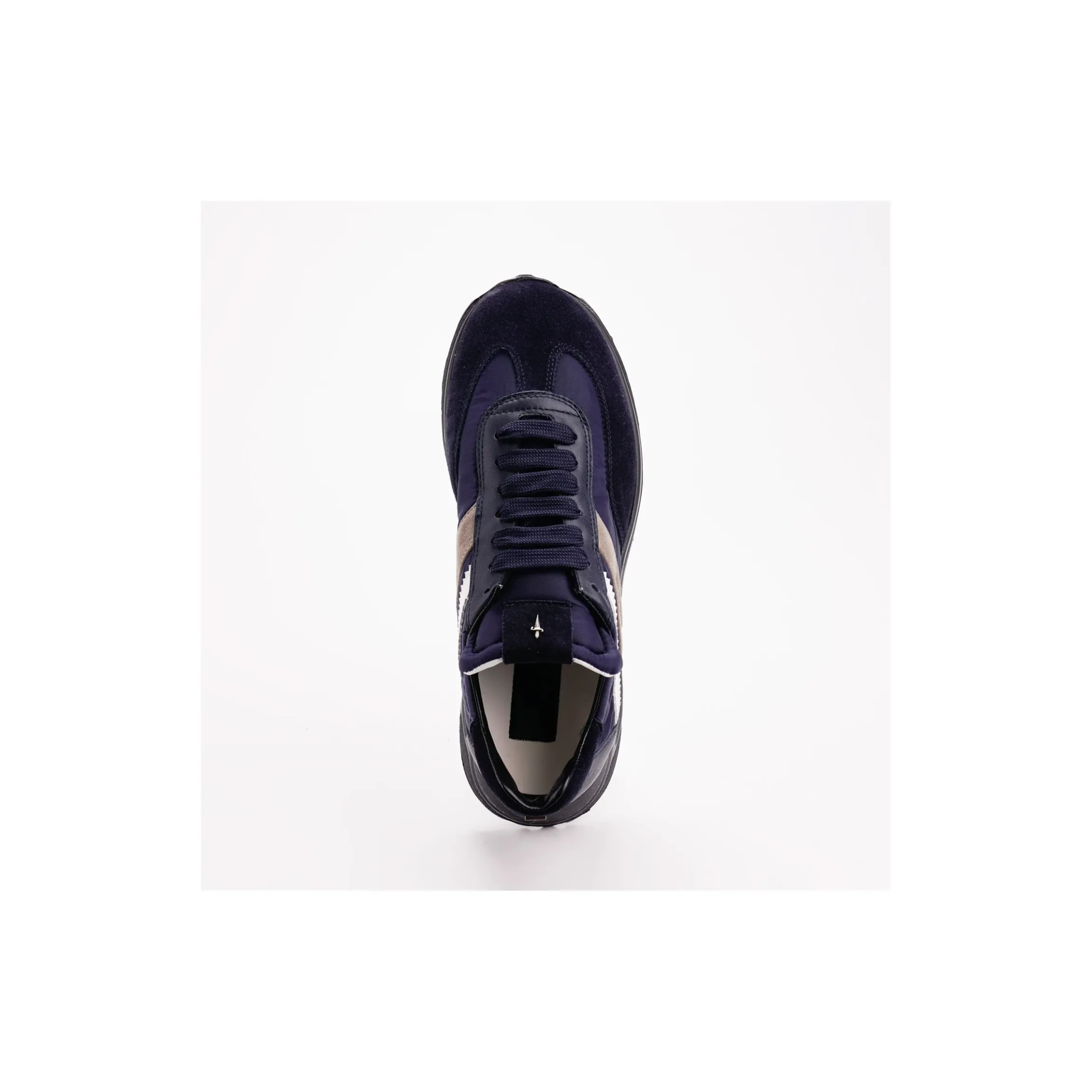 SNEAKERS CESARE PACIOTTI 4US , IN CAMOSCIO BLU E TESSUTO IMPERMIABILE, CON PARA IN GOMMA ULTRA LEGGERA BANDE LATERALI CON LOGO ICONICO. ALLACCIATURA CLASSICA, COMODISSIMA E ADATTA AD UNO STILE CASUAL E GIORNALIERO.