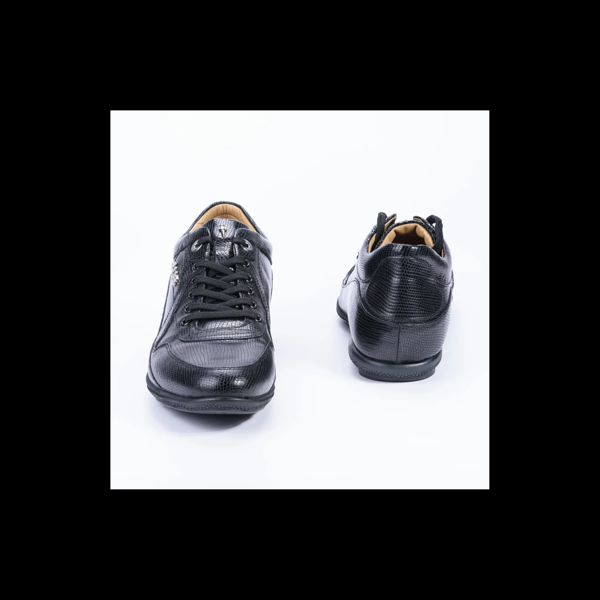 Sneakers Cesare Paciotti 4US Made in Italy, in pelle stampata LIZARD colore nero, fondo in gomma. Stringata, comodissima, plantare estraibile interno.