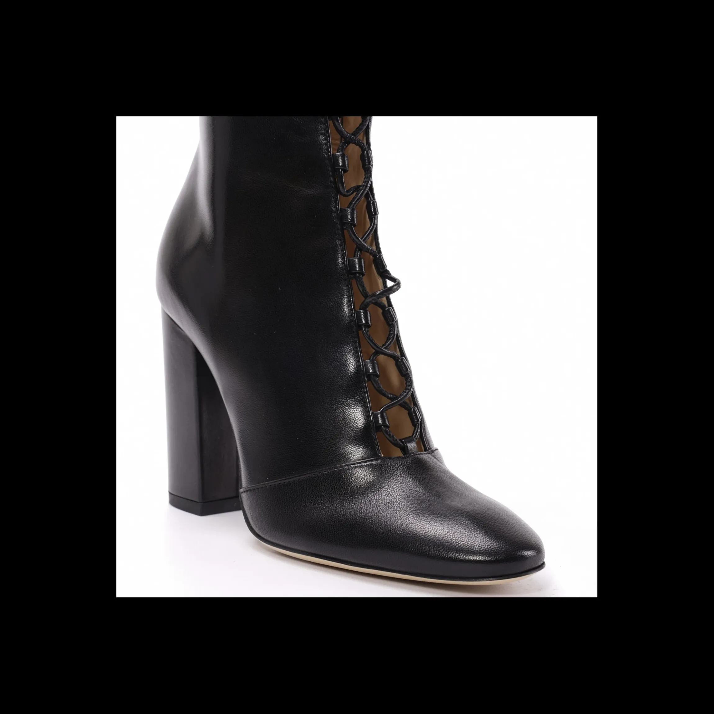 STIVALE CESARE PACIOTTI STRINGATO, IN PELLE DI COLORE NERO,PUNTA TONDA , ZIP INTERNA ALLA GAMBA,