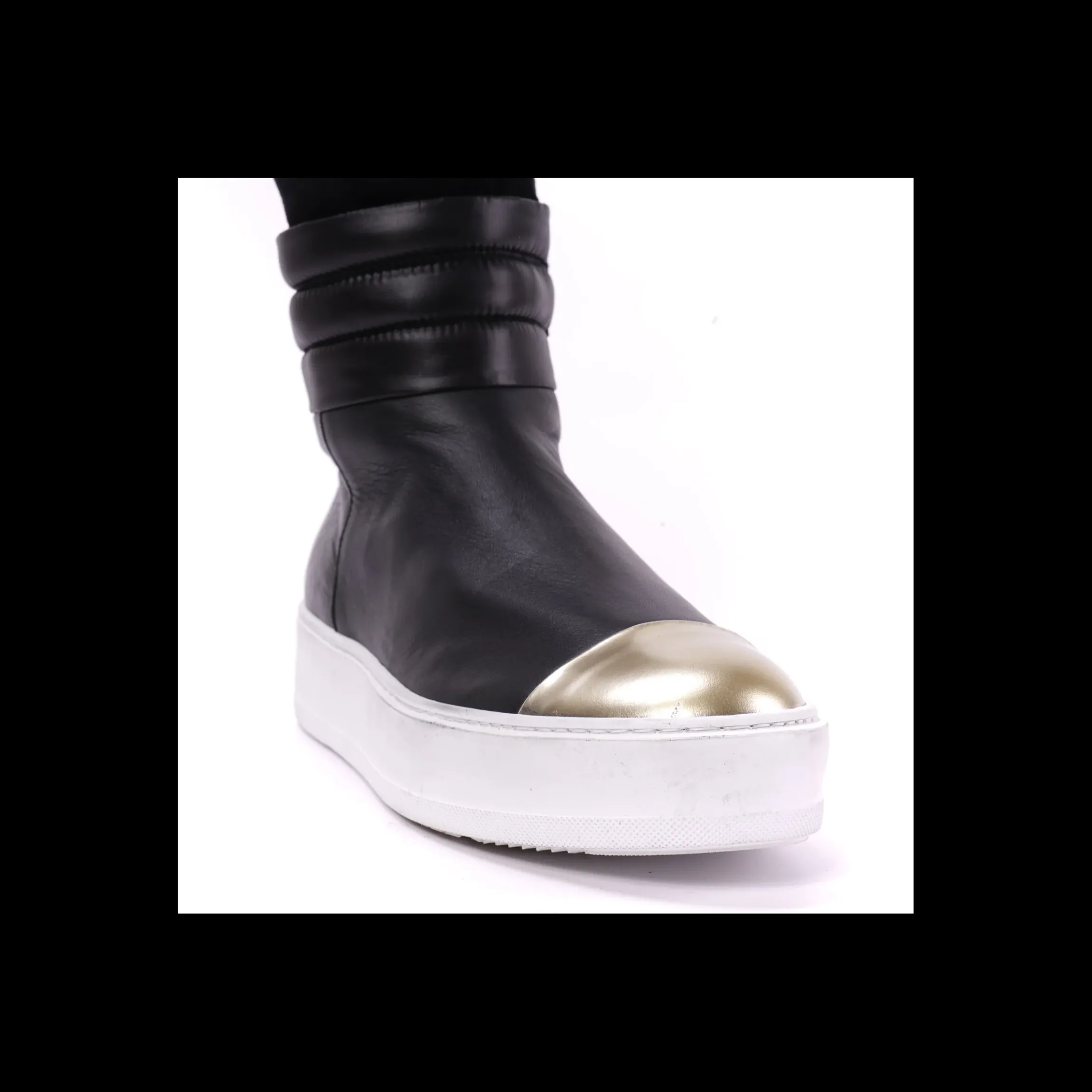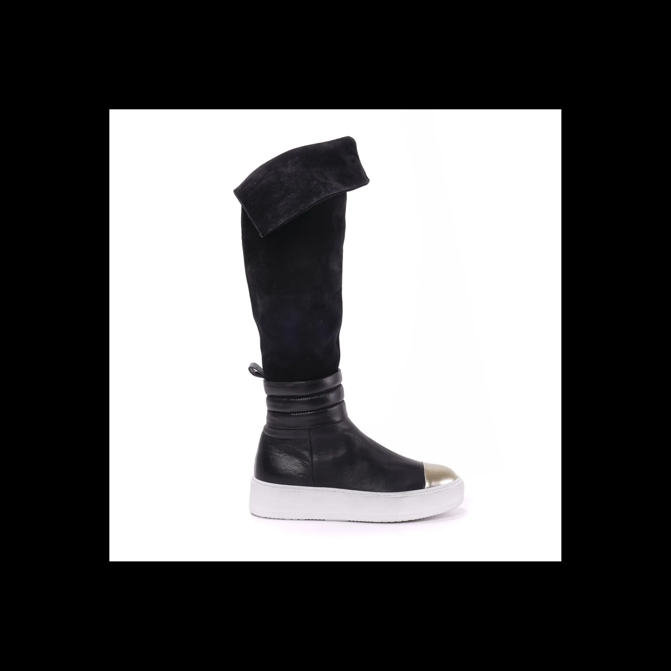 STIVALE CESARE PACIOTTI 4US, IN CAMOSCIO E PELLE DI COLORE NERO, PUNTA DI COLORE ORO, FONDO GOMMA , PARA ALTA 3 CM