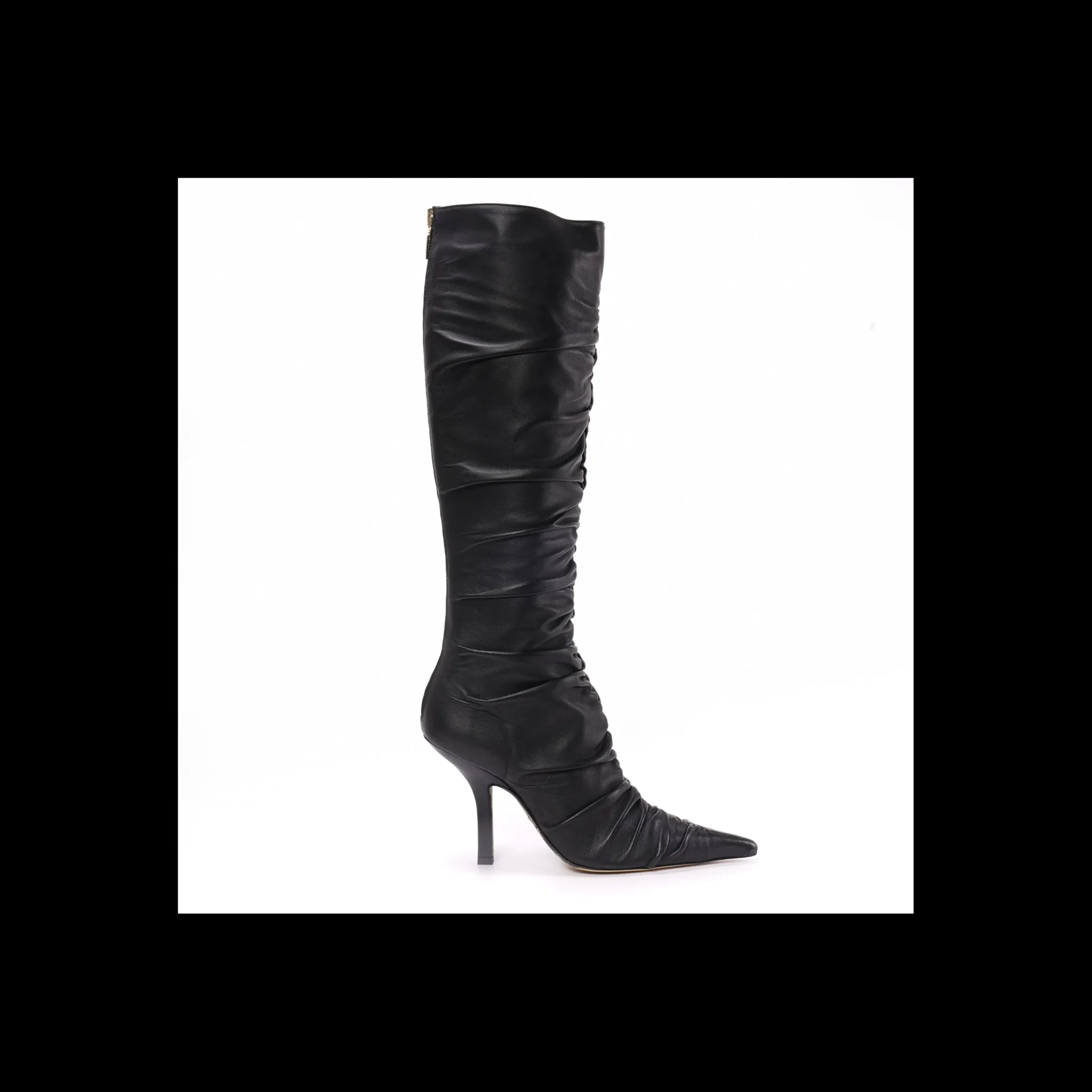 STIVALE CESARE PACIOTTI, IN PELLE MORBIDISSIMA, ARRICCIATA, CON TACCO ALTO CM 10.