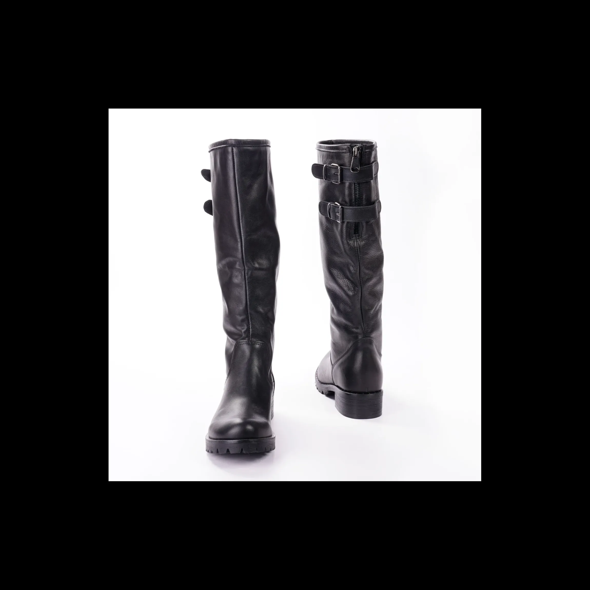 Stivali OSVALDO ROSSI in pelle colore nero, doppia fibbia laterale, profili con micro borchie, fondo gomma