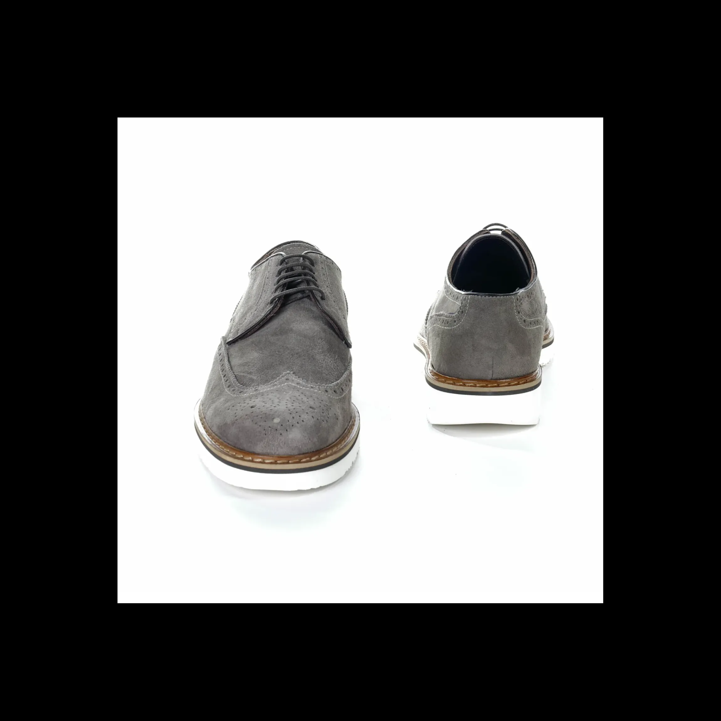 Stringata ANDREA NOBILE in camoscio colore grigio con dettagli colore cuoio, interno in pelle, fondo gomma colore bianco