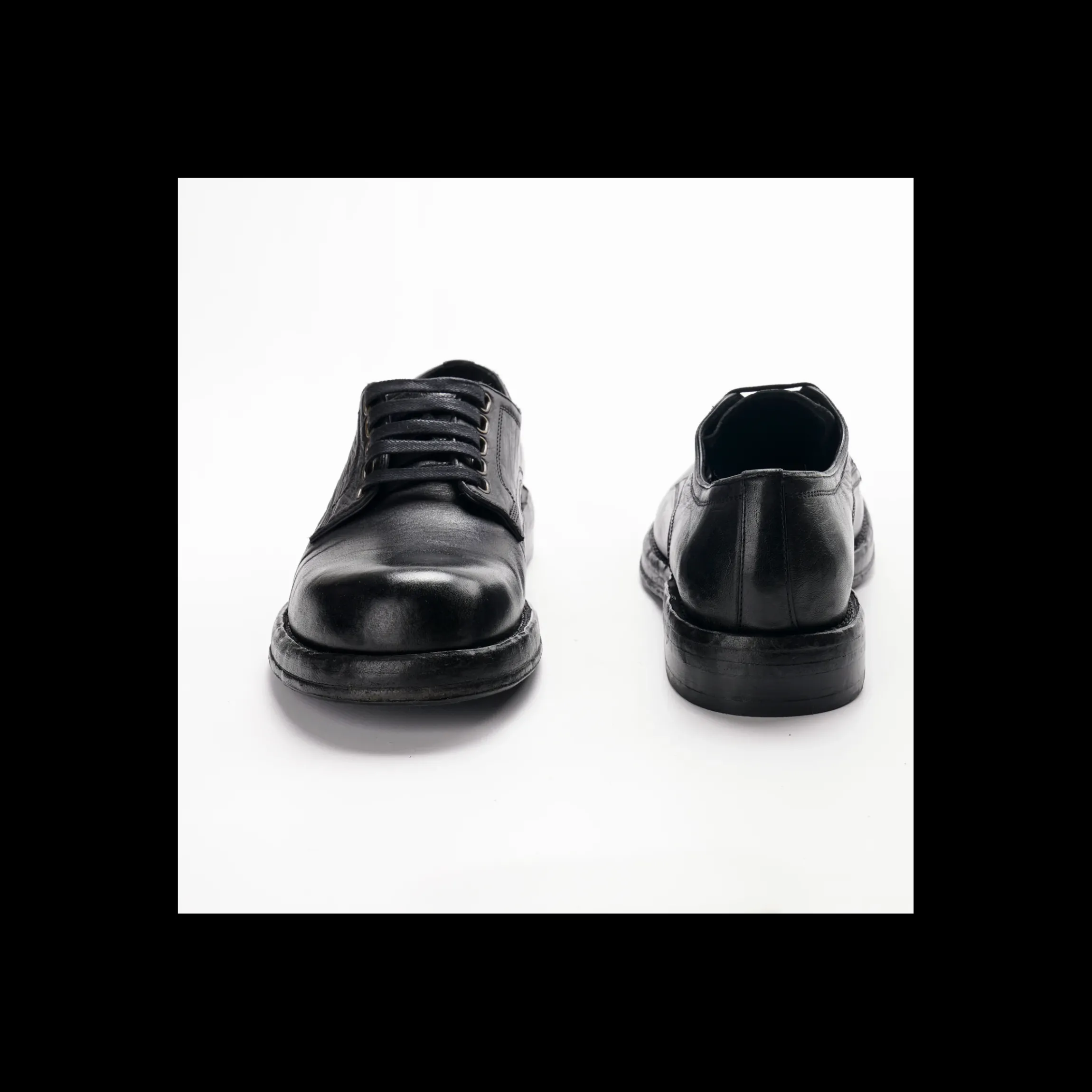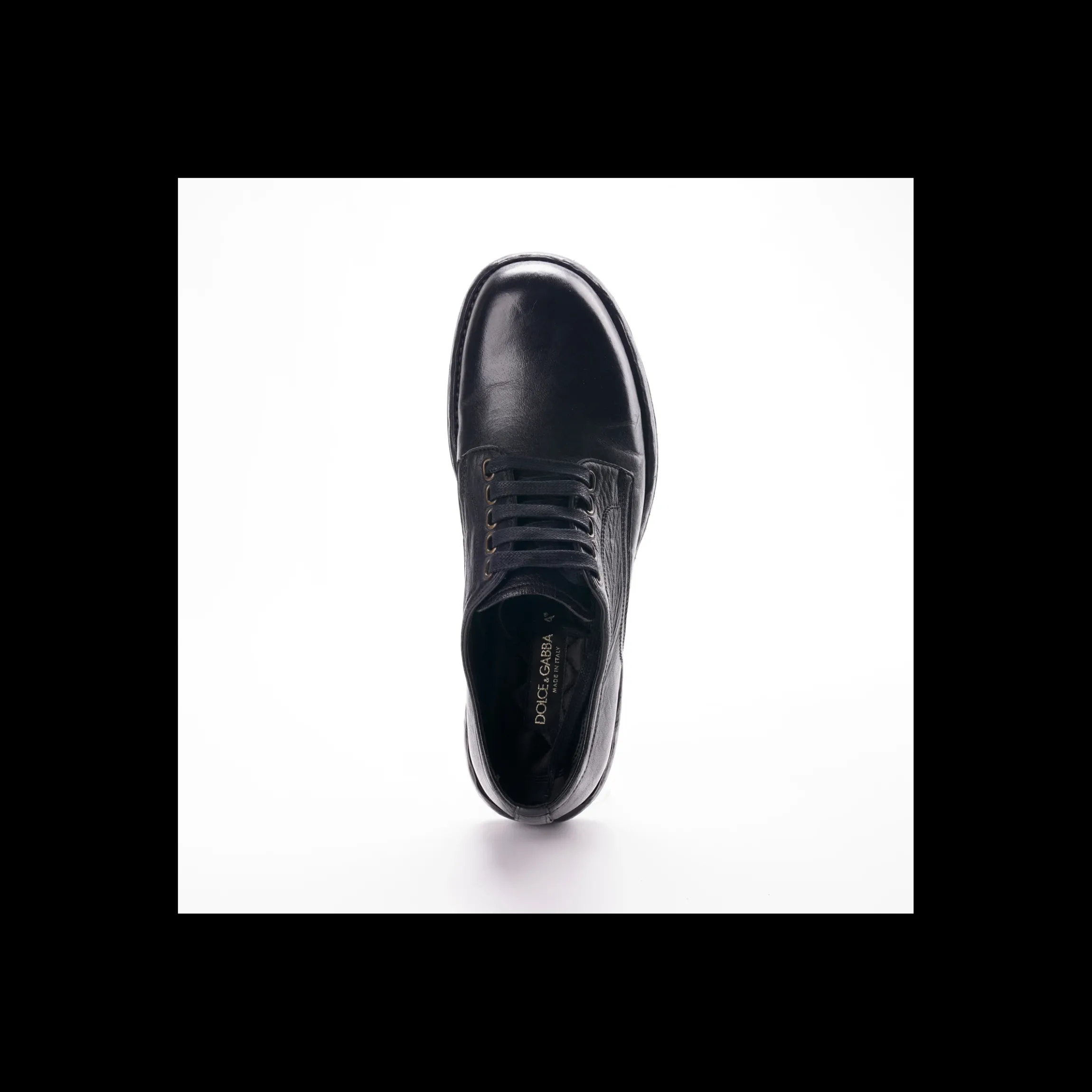 DERBY DOLCE E GABBANA, IN PELLE DI COLORE NERO. STRINGATA. PRESENTA CARATTERISTICHE INTENZIONALMENTE VINTAGE E GRAFFIATE CHE POSSONO VARIARE. FONDO GOMMATO, PUNTA TONDA, ASSOLUTAMENTE MADE IN ITALY.