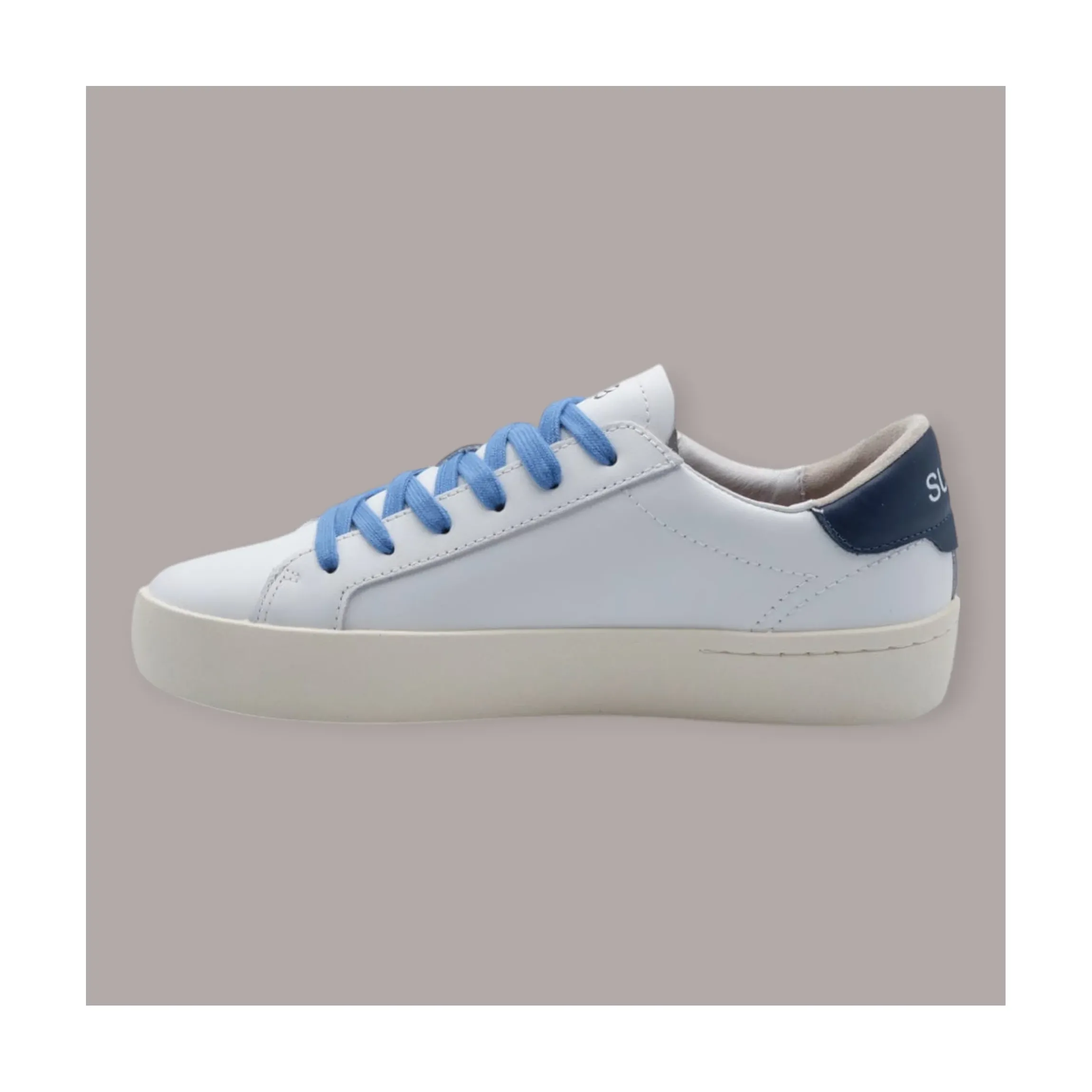 SUN 68 STREET LEATHER SNEAKERS UOMO con la tomaia in pelle e dettagli in camoscio e il sottopiede estraibile che assicura protezione e grande comfort. Suola in gomma di alta qualità, linguetta e tallone con logo marchio inciso, e sul lato esterno stampa logo tono su tono. Disponibile nei colori bianco/blu e bianco/panna