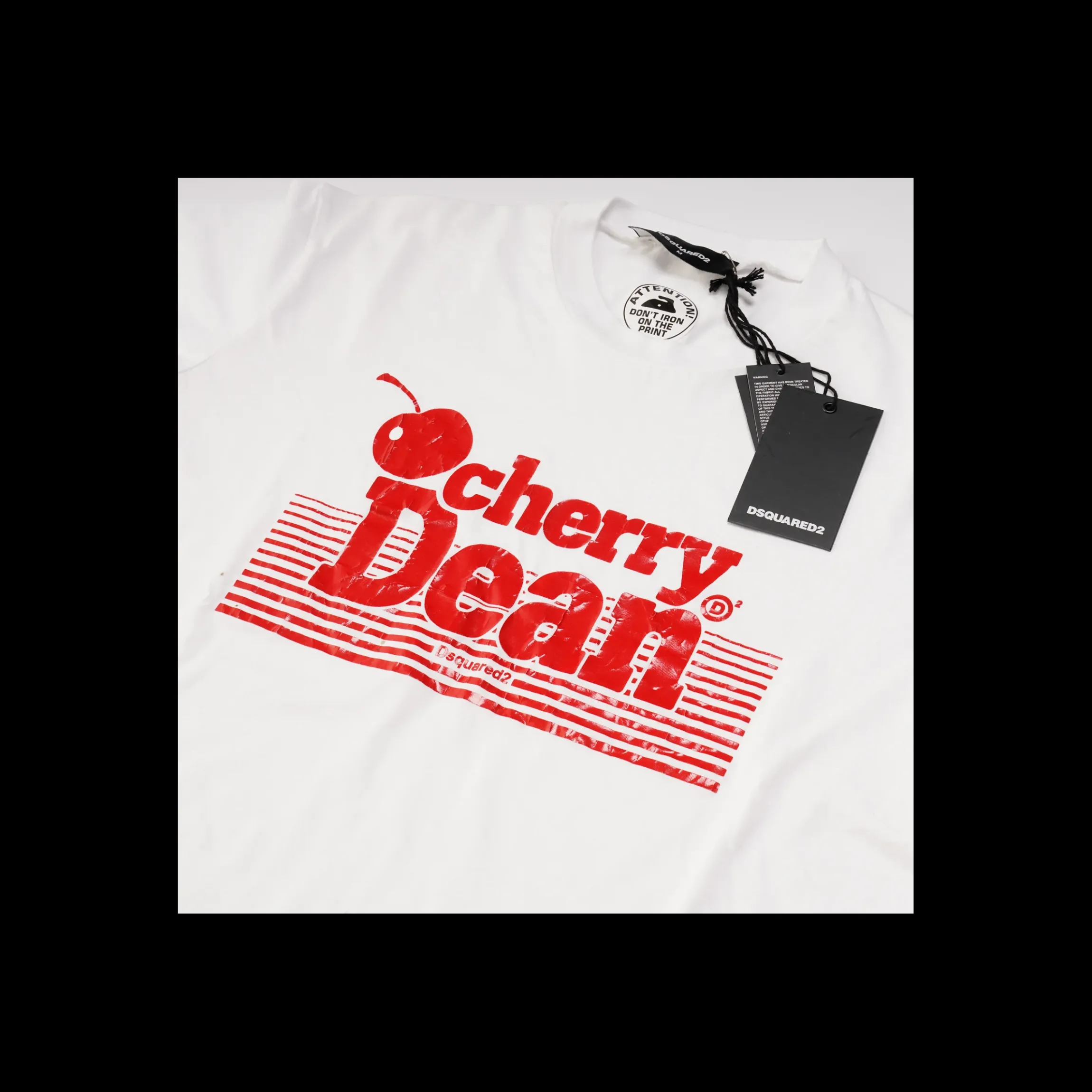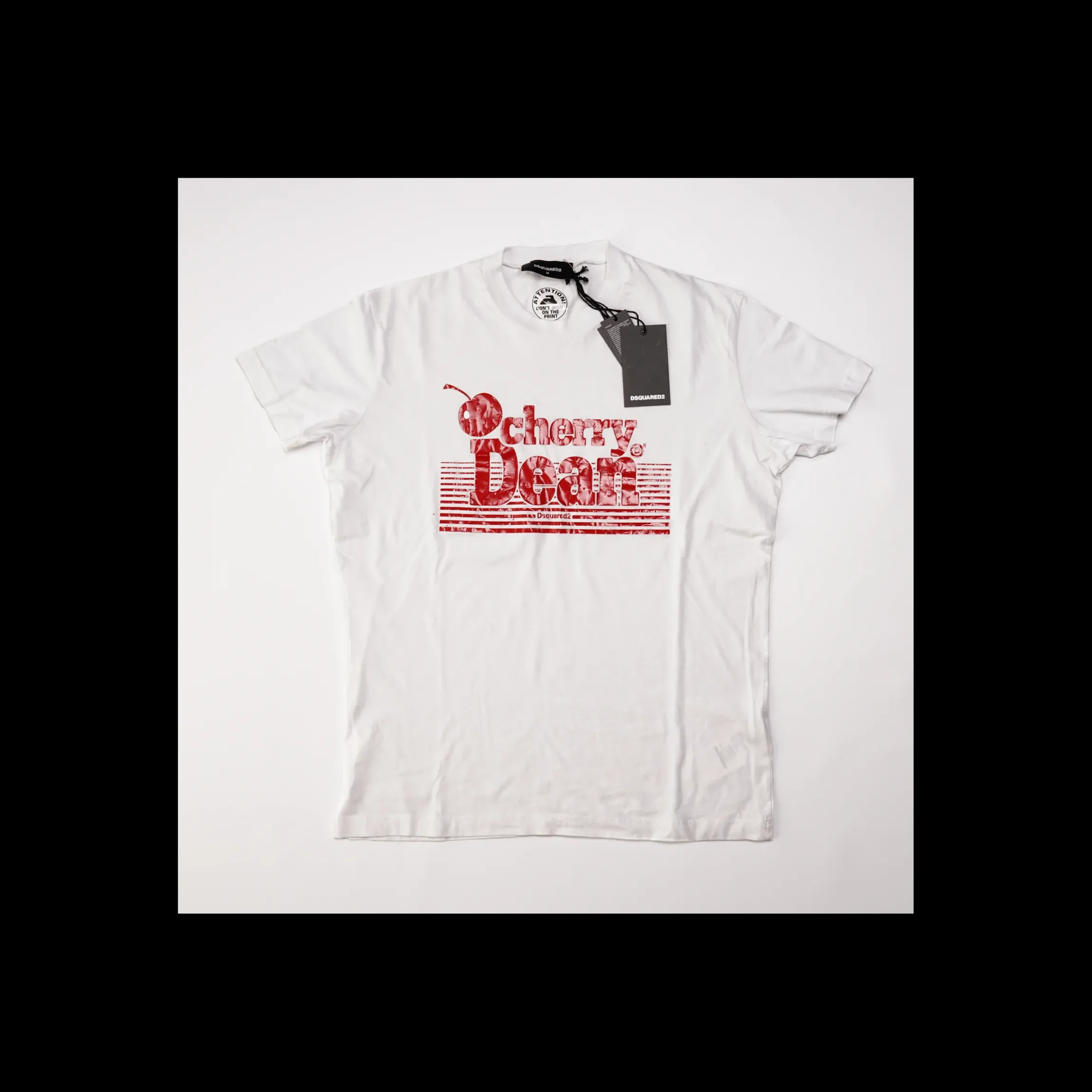 T-Shirt DSQUARED2 manica corta in 100 % cotone colore bianco , maxi stampa effetto crack colore rosso.